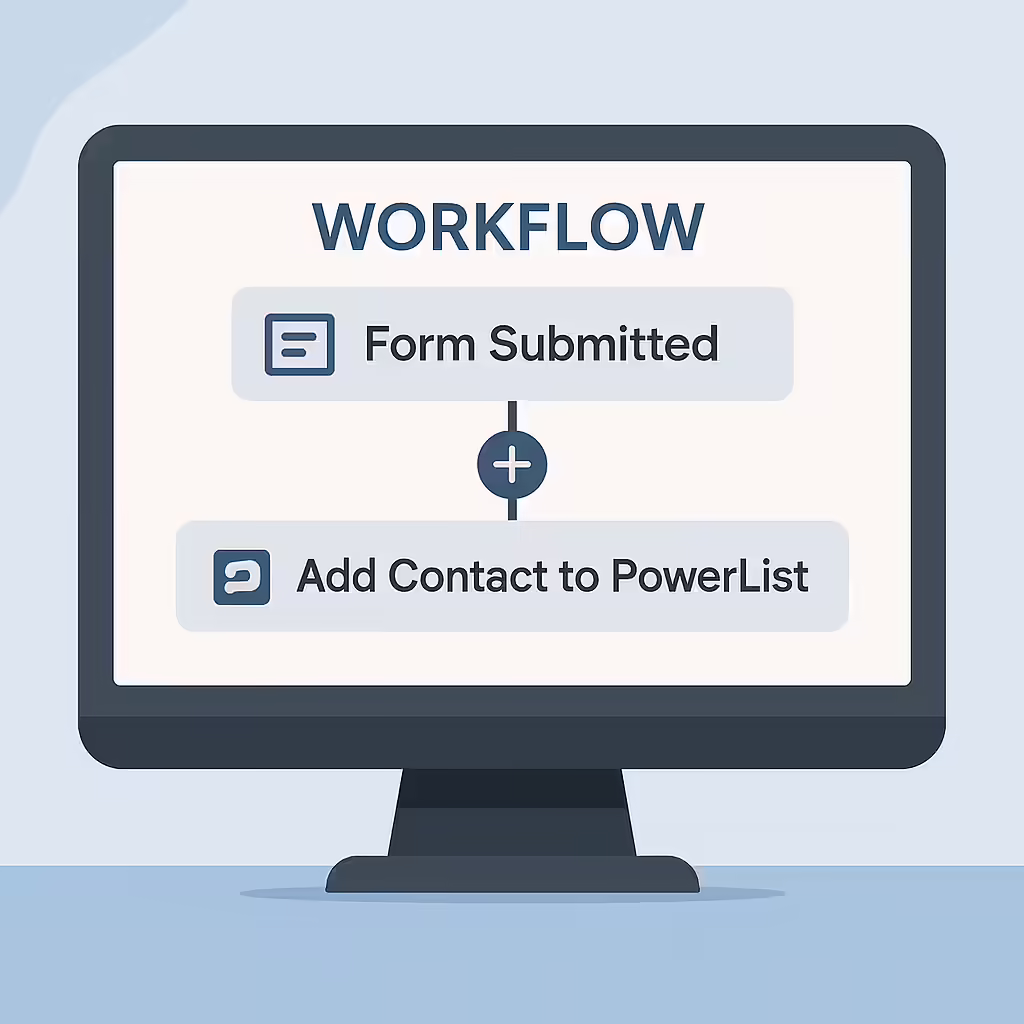 Step 5: Choose the action "Add Contact to PowerList." From the dropdown menu, select your "New GHL Form Leads" list.
